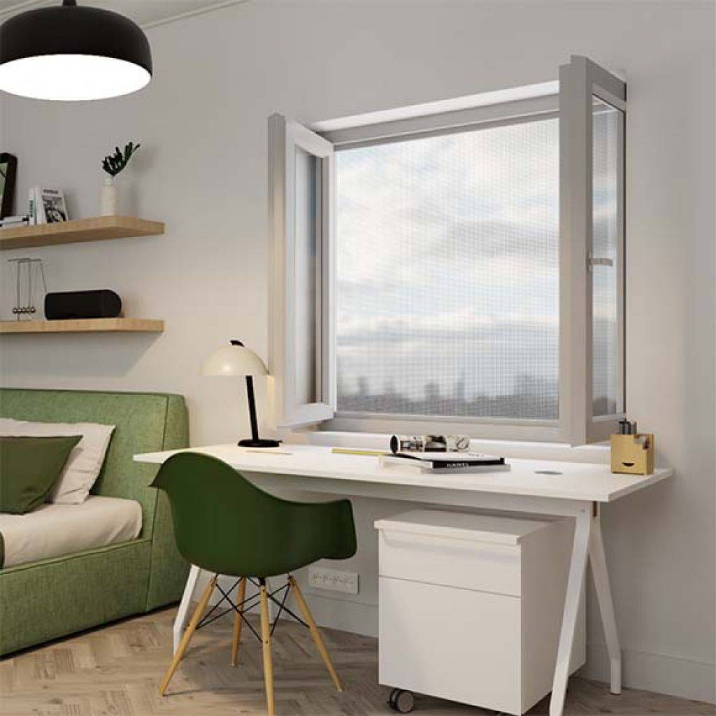 La moustiquaire pour porte et fenêtre enroulable MoustiRoll2 vous protège des insectes tout en vous permettant de garder une bonne visibilité vers l’extérieur.